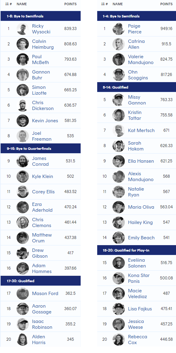 | Joel Freeman | 9 | 8 | 420.13 (No. 8) | 11 | 0 | 13.18 | T14 |