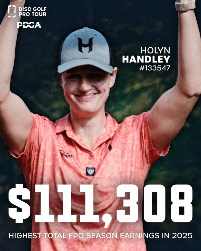 Holyn Handley sets her career-high single year tournament prize money earnings record in 2025 as she rakes in a whopping $111,308 during the 2025 season in tournament prize money earnings. This is the second-highest FPO cash earnings in a single year following Kristin Lätt in 2023 ($116,137).